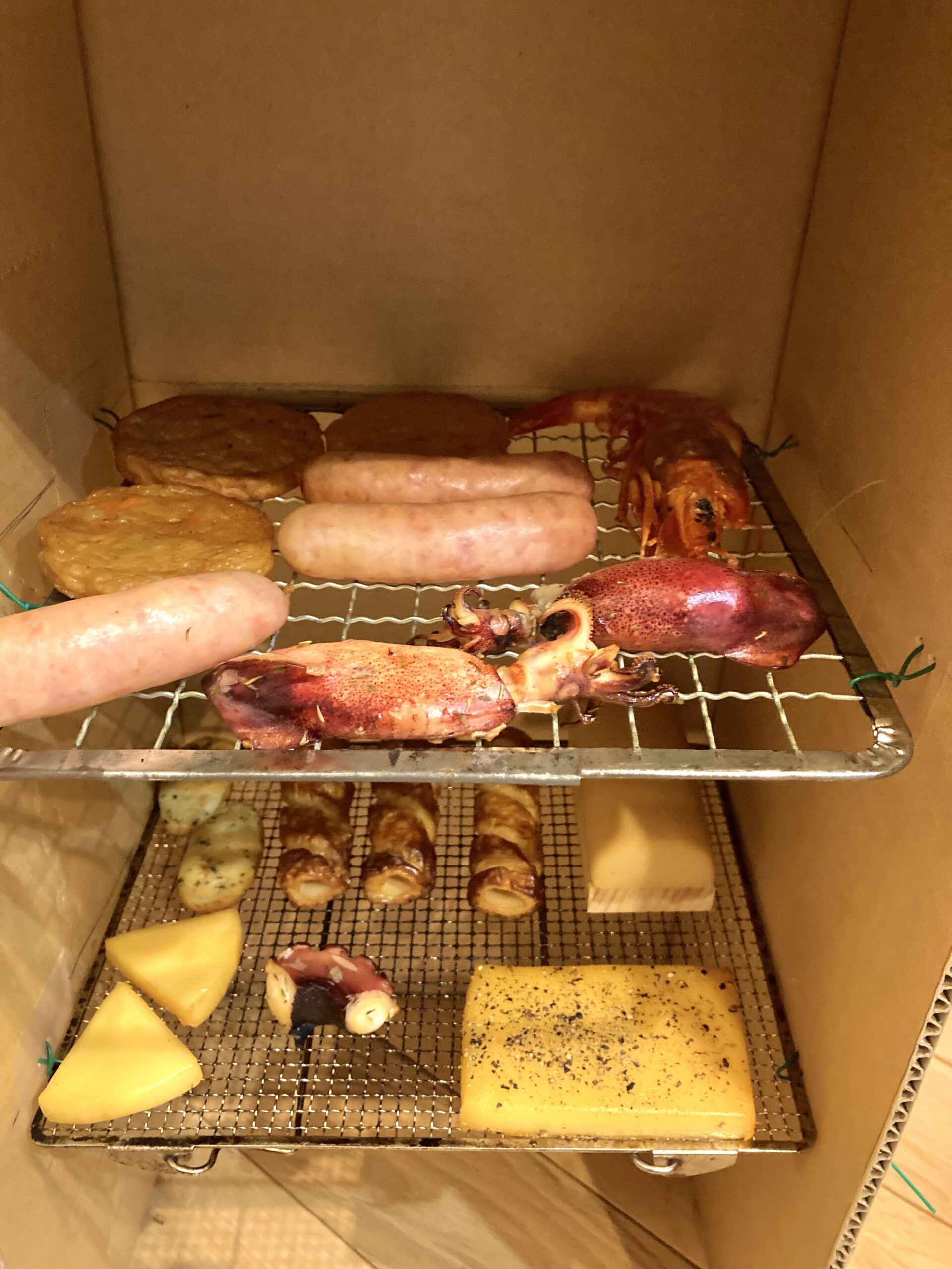12/14(日)に燻製作りをしました。 ここ最近ずっと乾燥していたのに、なぜか土曜日の夜中から雪と雨。日曜日も午前中いっぱい曇りで湿度80%以上でした。 燻製作りは食材の乾燥が大切です。食材の水分が多いと燻煙を纏ってくれ … 続きを読む