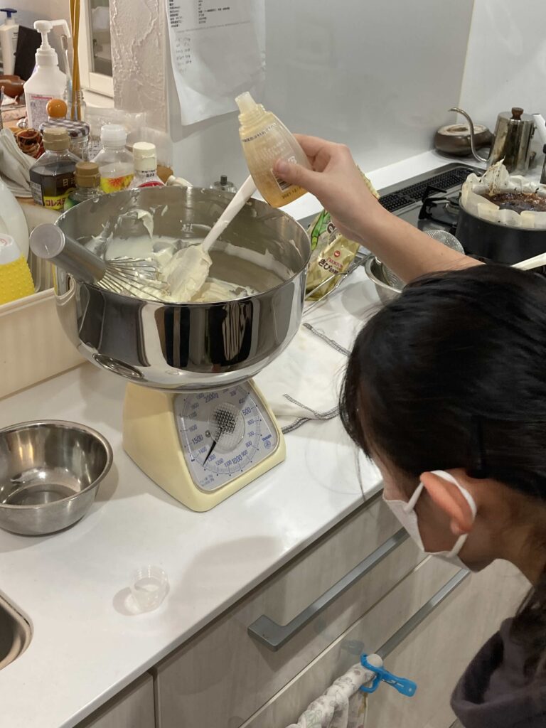 「クリームチーズはもったりしていて、混ぜるのすごく疲れたよね。」