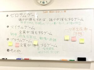 ワクワク塾の今月の脳力授業は『会社経営ゲーム(中級)』 中3の生徒が2名参加してくれました。 授業の前日に、このゲームの開発者さんが・ゼロサムゲーム:誰かが得をすれば、誰かが損をするゲーム・マイサムゲーム:全員が損をする […]